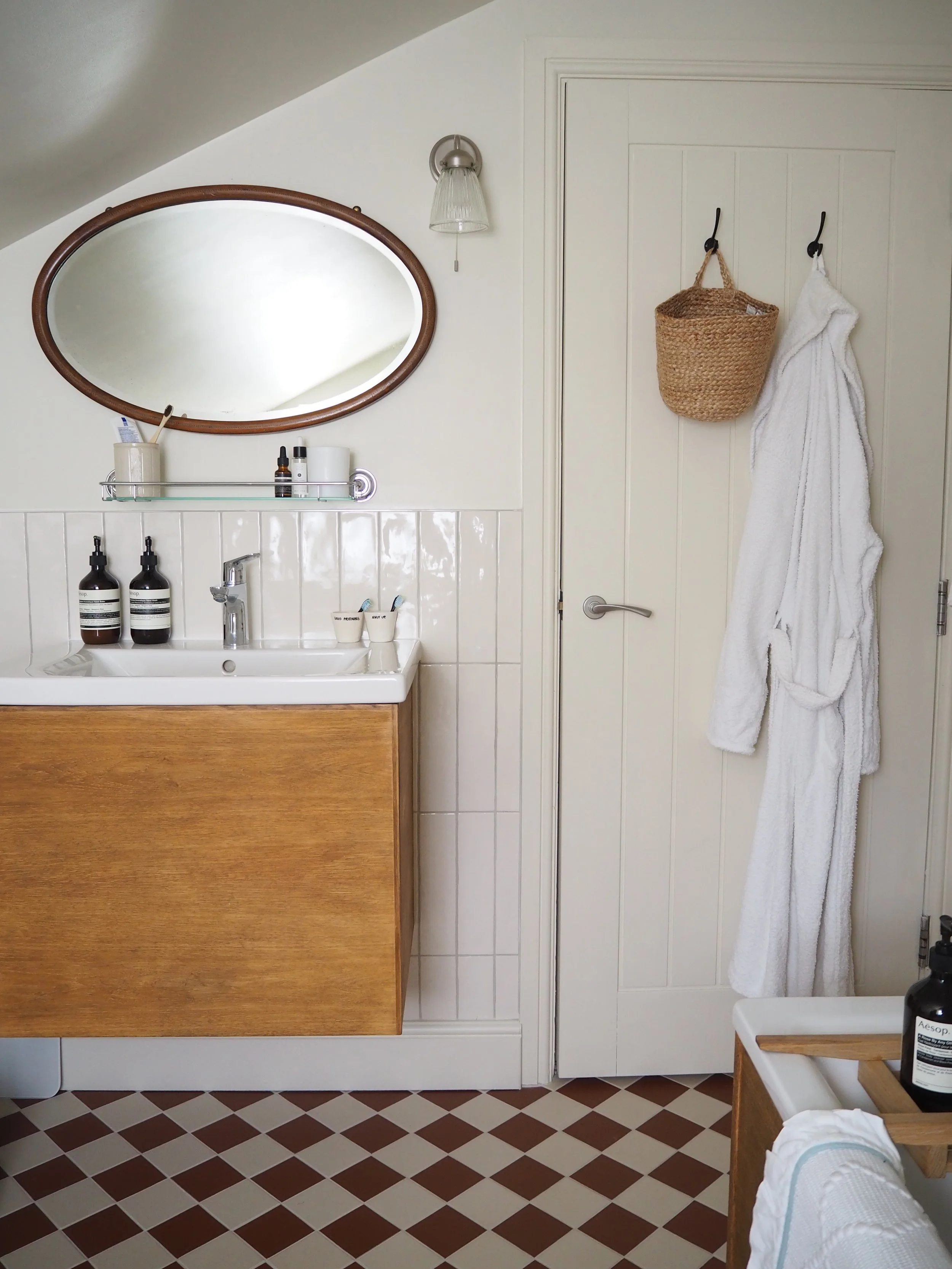 All furniture remained- the bath and vanity unit were sanded back and stained darker, along with brand new wall and floor tiles to reflect the personality of the homeowners and period of the property.